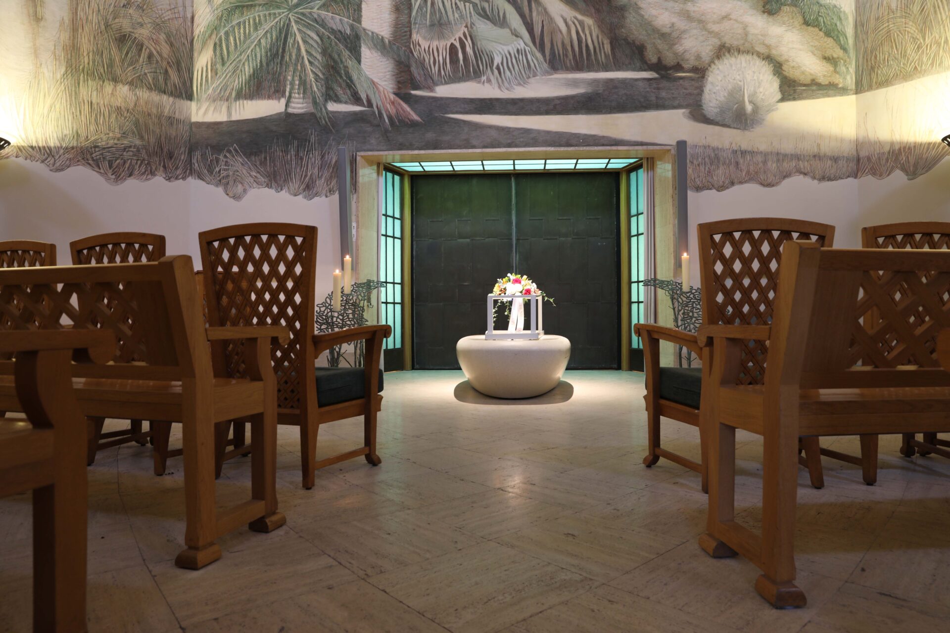 Crematorium De Nieuw Ooster biedt ook de mogelijkheid voor een afscheid in de Intieme Aula. Ook hier worden de genodigden ontvangen in de ontvangstruimte waar zij een bericht kunnen achterlaten in het condoleanceregister.