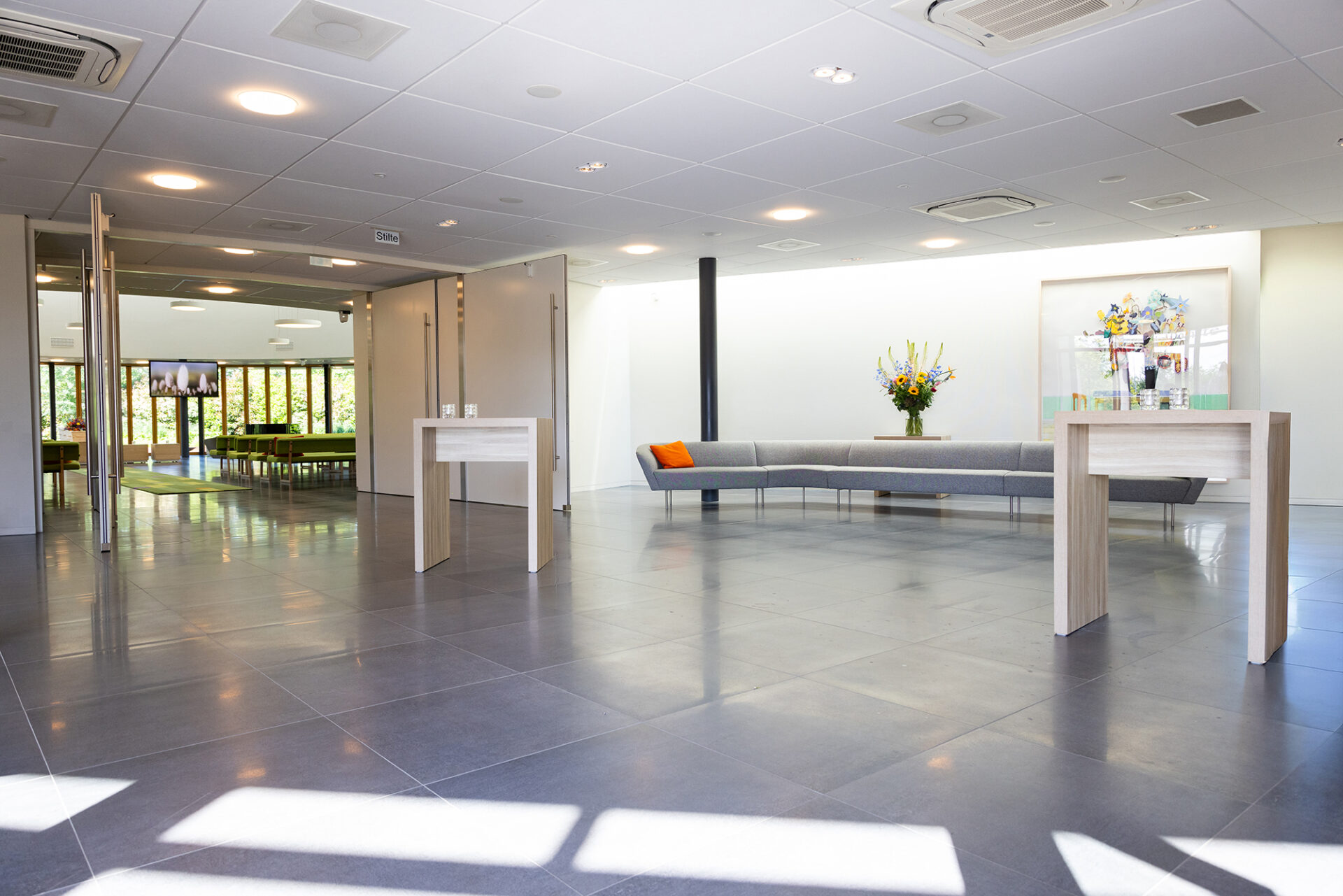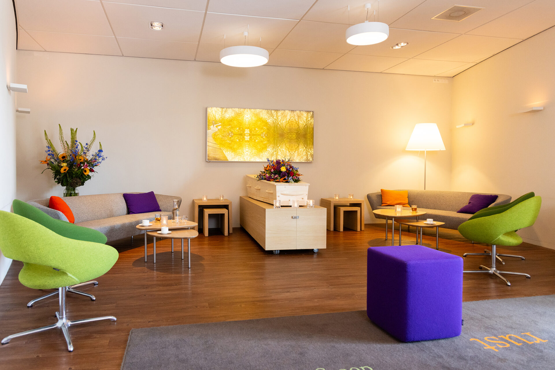 Deze ruimte is huiselijk ingericht en leent zich bij uitstek voor een persoonlijke en intieme uitvaart. De zorgzame mensen van Crematorium Domstede kunnen ter plekke iets te drinken serveren.