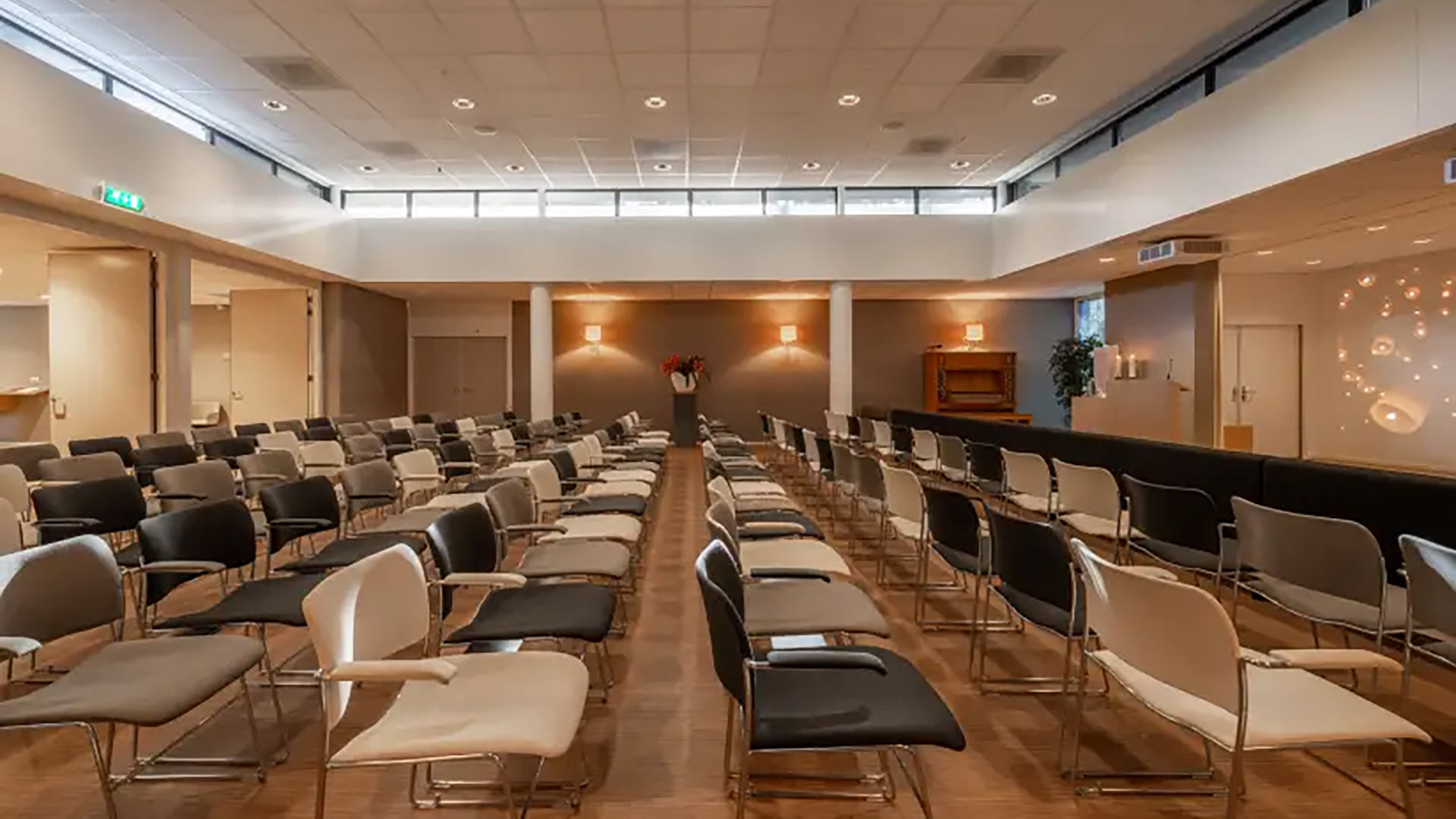 Voor een Crematie Compact, een afscheidsplechtigheid van maximaal 30 minuten met maximaal 12 personen kunt u op Crematorium Heidehof gebruik maken van Aula De Hofzaal – een sfeervolle, lichte ruimte. U krijgt hier alle ruimte om de plechtigheid naar eigen inzicht vorm te geven.