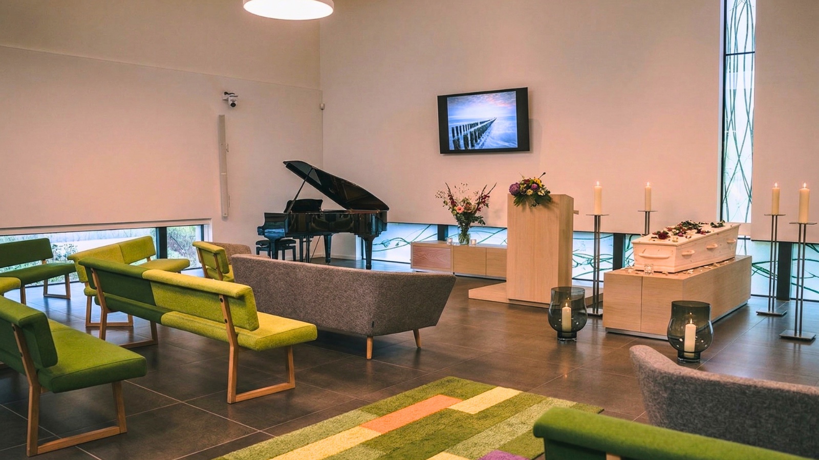 Crematorium Het Zeeuwse Land beschikt over een ruime aula die plaats biedt aan 225 personen, waarvan 125 zitplaatsen en 100 staanplaatsen. De kleurrijke inrichting draagt bij aan een warme, huiselijke atmosfeer.