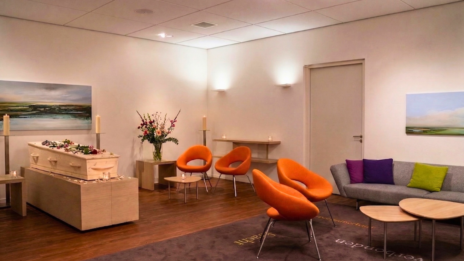 Deze huiselijke kamer is licht, warm en comfortabel ingericht en daardoor zeer geschikt voor een ontspannen en informeel laatste samenzijn. Bij een drankje van de cateringservice neemt u hier op eigen, persoonlijke wijze en in beslotenheid afscheid van uw dierbare.