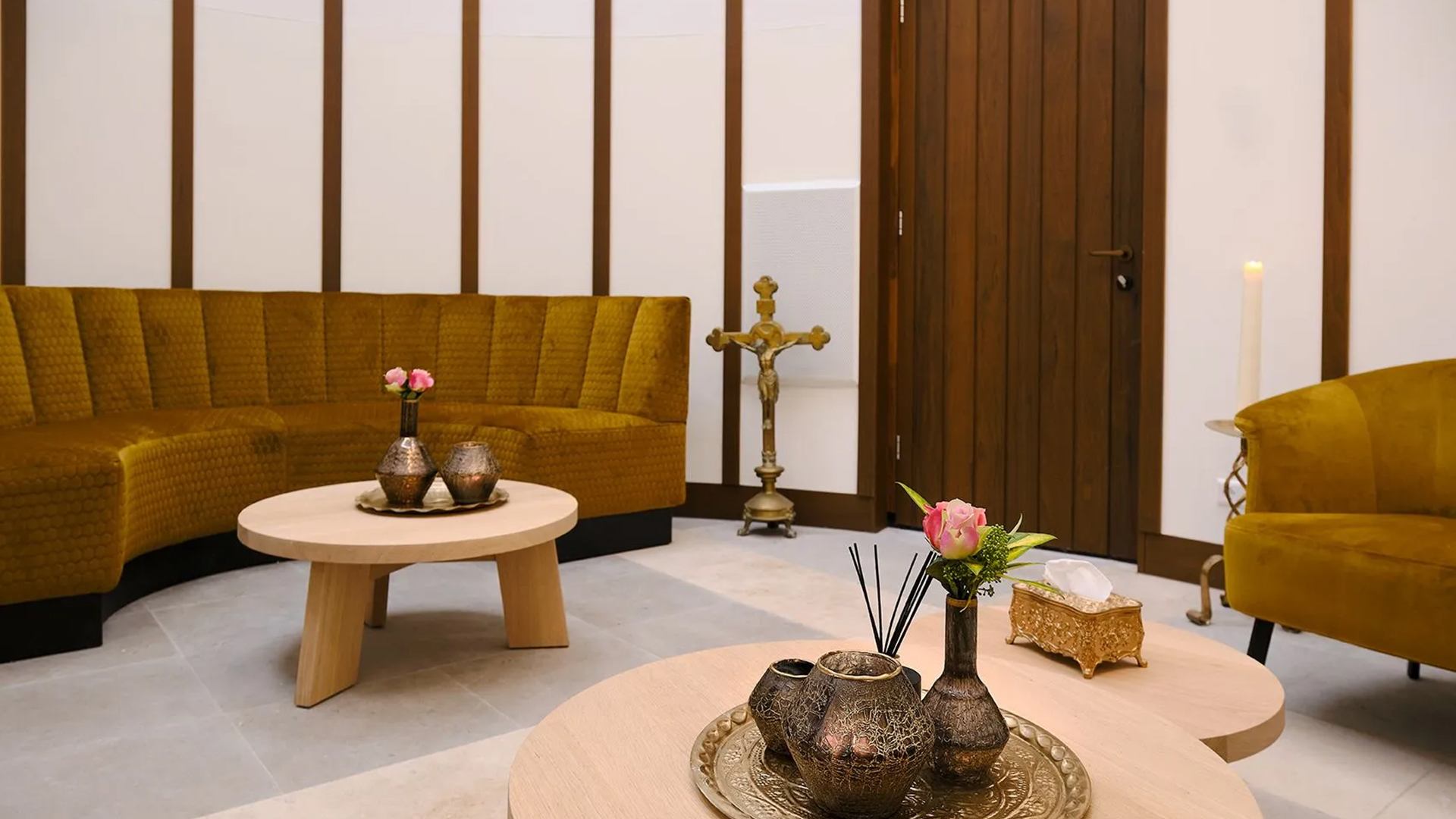 U kunt in de Kleine Kapel terecht met maximaal 12 personen voor een periode van 30 minuten – Uitvaart24 zorgt voor thee, koffie of fris.