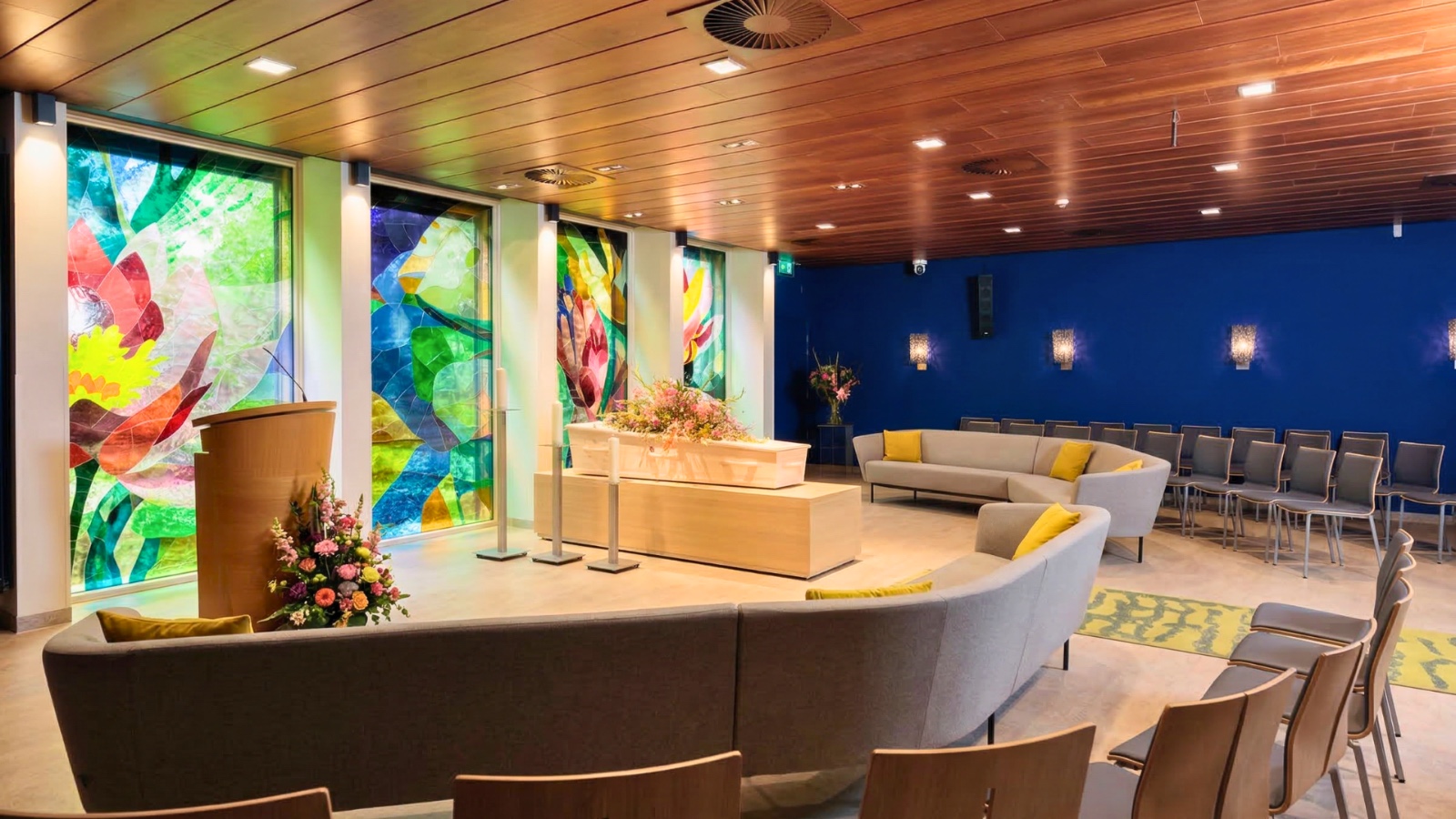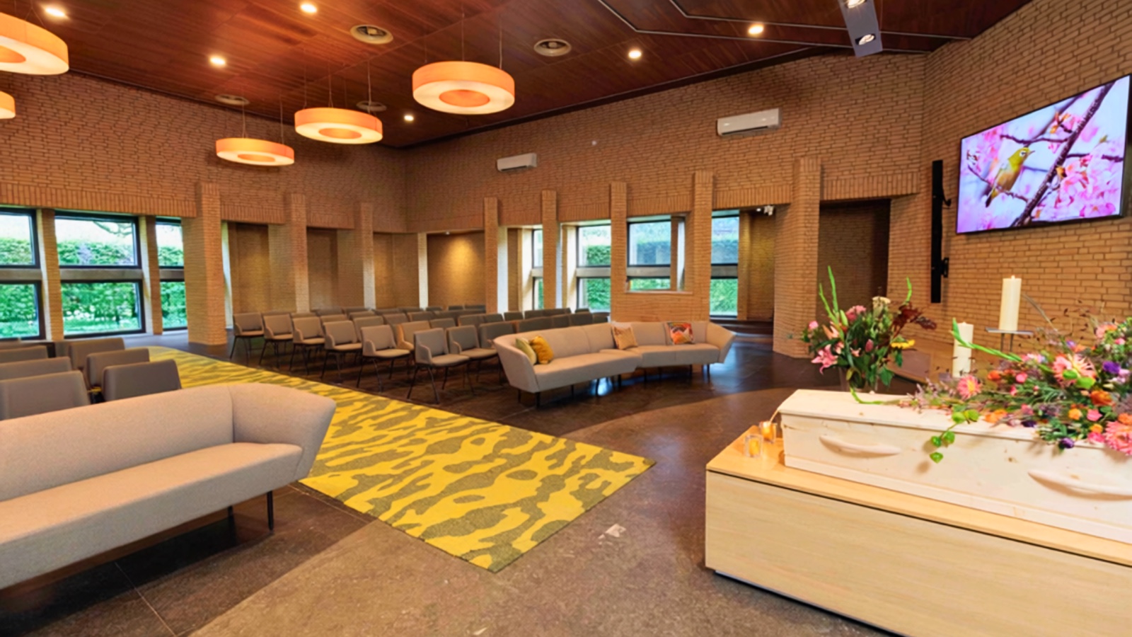 Vanuit de sfeervolle ontvangstruimte van Crematorium Rijtackers worden uw genodigden begeleid naar de modern vormgegeven Aula Lux. Terwijl u zich met de familie voorbereidt in de familiekamer, kunnen uw genodigden een bericht achterlaten in het condoleanceregister.