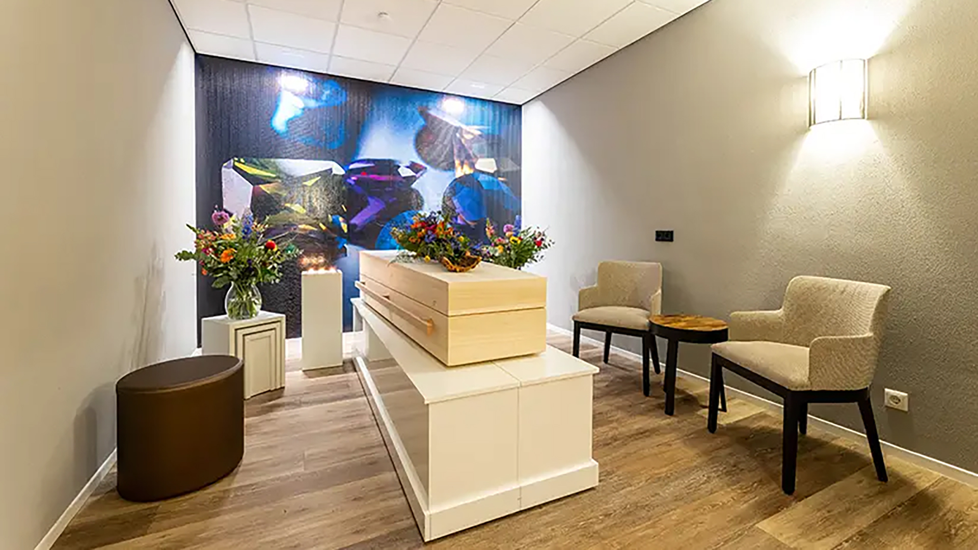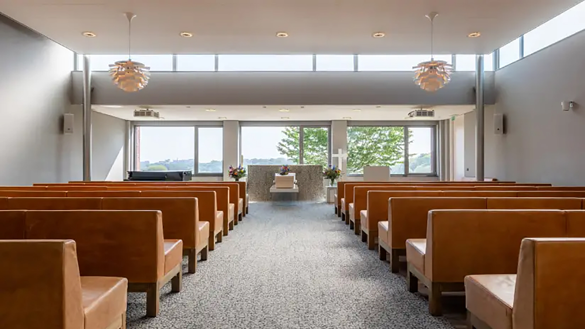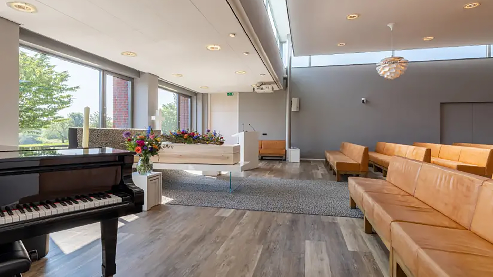 De serene omgeving biedt troost en ruimte voor bezinning, terwijl het warme en rustgevende interieur bijdraagt aan een waardig en persoonlijk afscheid.
