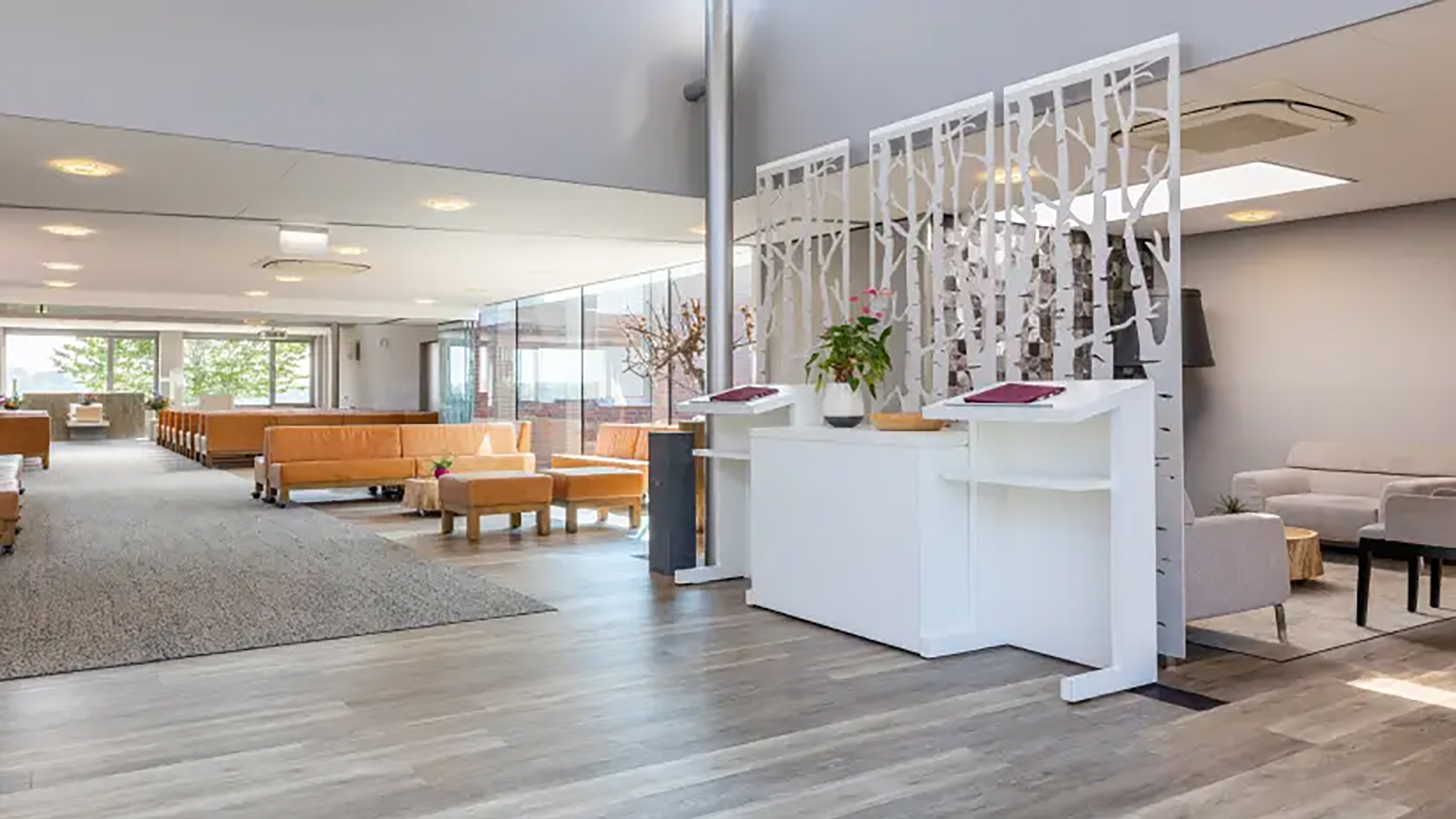 Crematorium Schifferheide beschikt over de ruime Grote Aula die plaats biedt aan 300 personen. Een imposante ruimte die door de warme kleuren van de inrichting toch intiem aandoet.