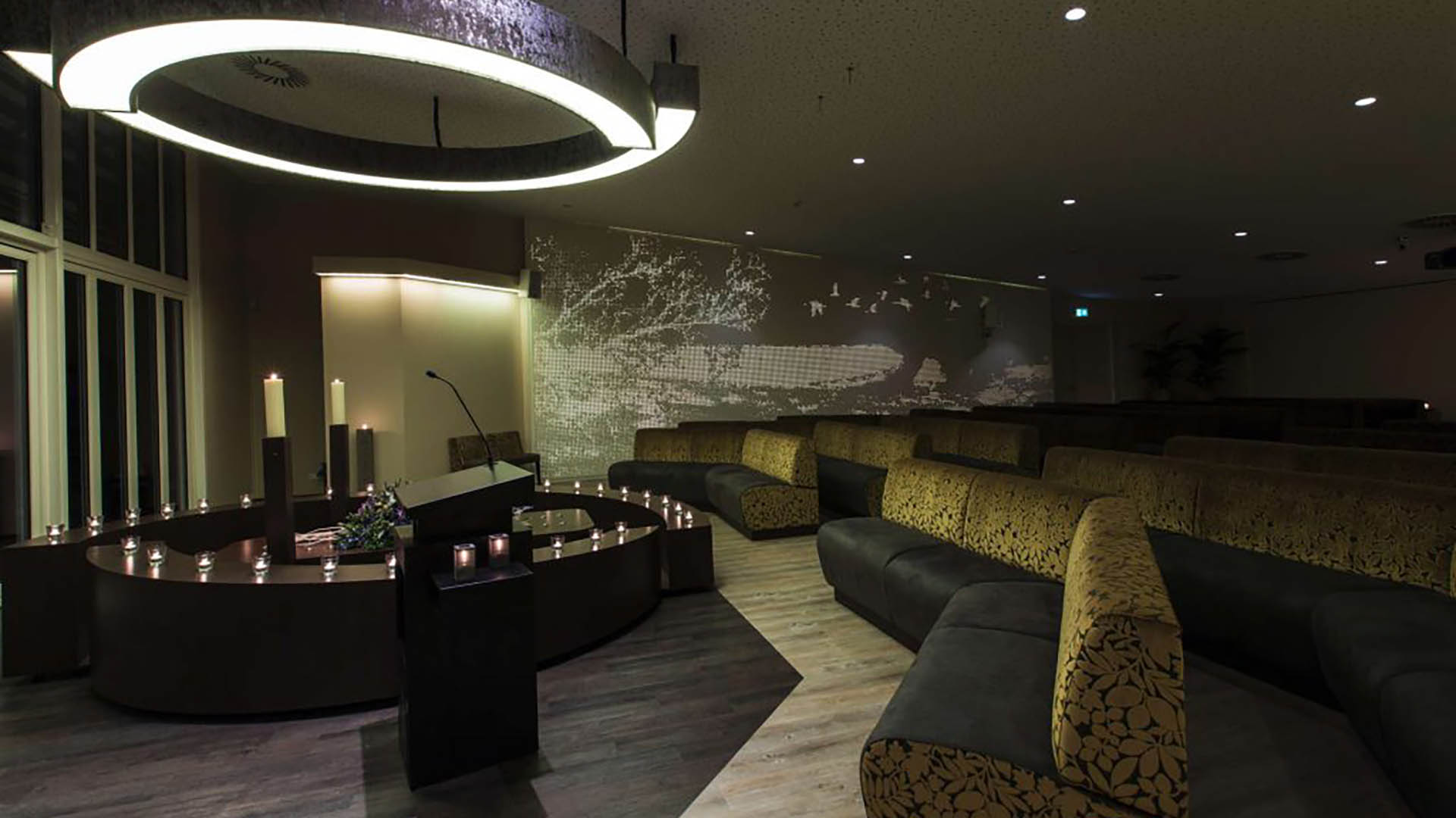 Door de kleinschalige opzet biedt Crematorium Seterse Heide een persoonlijke benadering, waarbij het niet alleen mogelijk is om de indeling van de aula aan te passen aan het aantal belangstellenden, maar ook om de verlichting in de aula naar eigen wens te regelen.