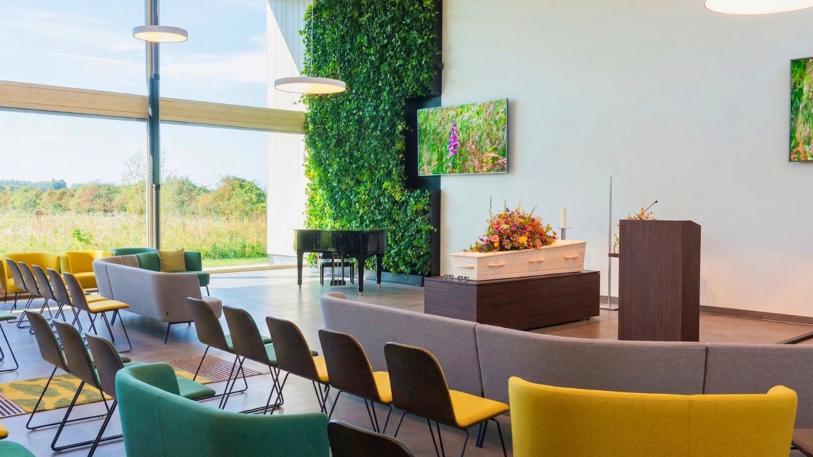 Vanuit de aangename ontvangstruimte van Crematorium ’t Karbrugsche Veld worden uw genodigden begeleid naar de lichte, ruimtelijke Aula Lingezegen. Terwijl u zich met de familie voorbereidt in de familiekamer, kunnen uw genodigden een bericht achterlaten in het condoleanceregister.