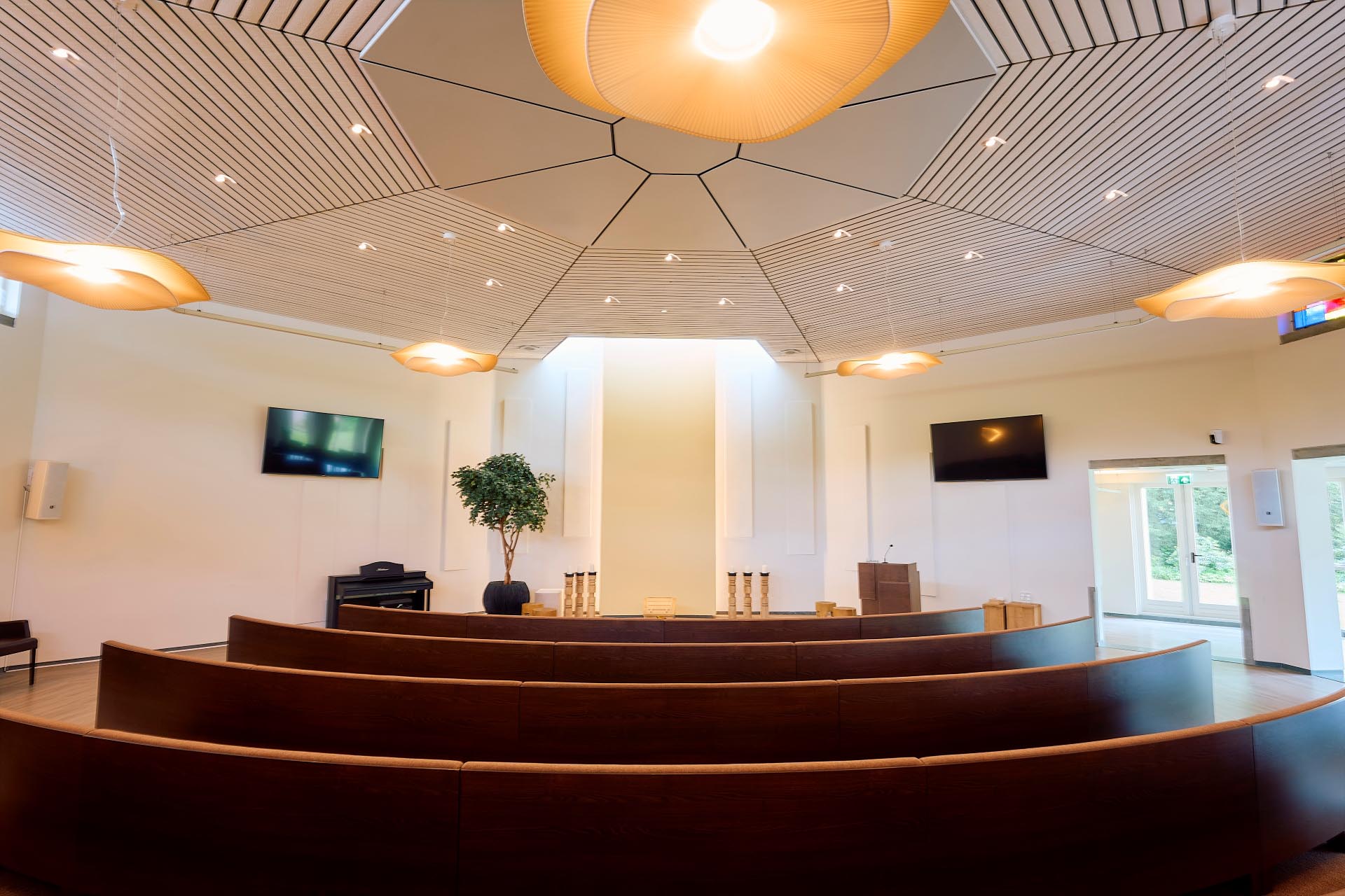 Aula Aurora beschikt over alle moderne apparatuur voor multimedia-presentaties en muziek.
