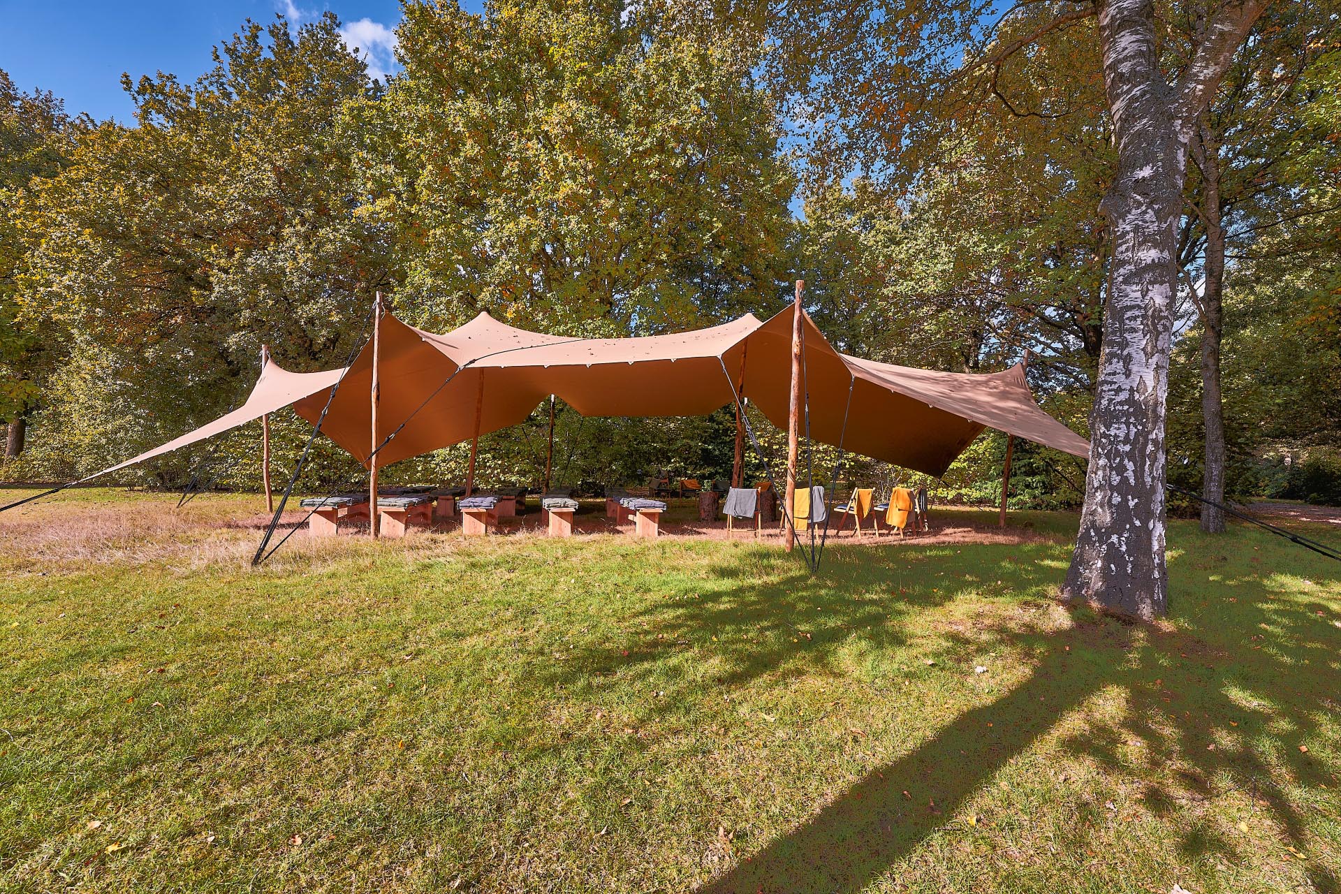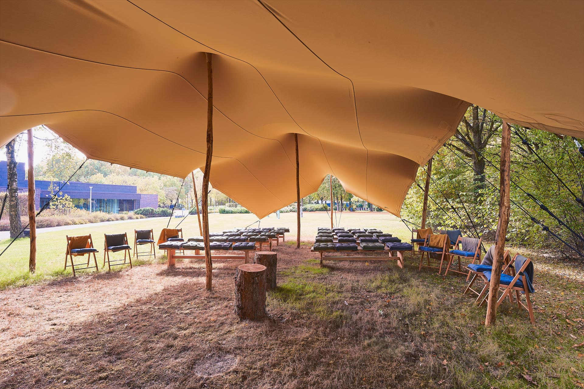 De tarp (tent) staat midden in het Afscheidspark, het is daarom goed om te weten dat er andere bezoekers tijdens de bijeenkomst langs kunnen lopen of rijden. Wanneer u gebruik maakt van Buitenaula Aperto dan staat ook de Huiskamer van Crematorium Tilburg tot uw beschikking. U kunt deze ruimte gebruiken bij slecht weer of bijvoorbeeld voor de condoleance.