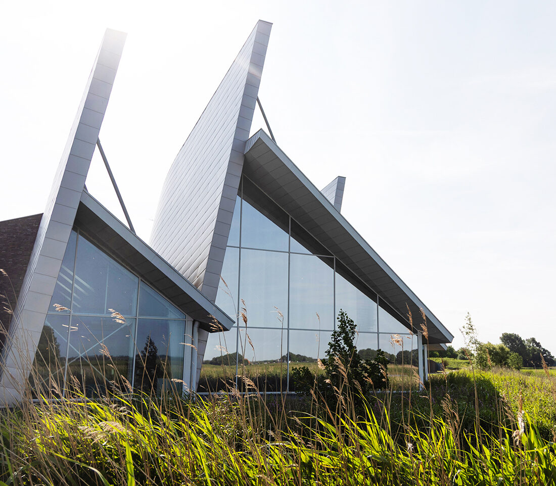De drie puntdaken doen denken aan een zeilschip