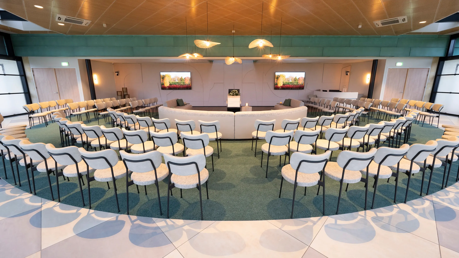 De aula biedt zitplaatsen voor 120 personen, met staanplaatsen uit te breiden tot maximaal 350 personen. Alle moderne multimedia-faciliteiten voor een persoonlijk, eigen afscheid zijn aanwezig,