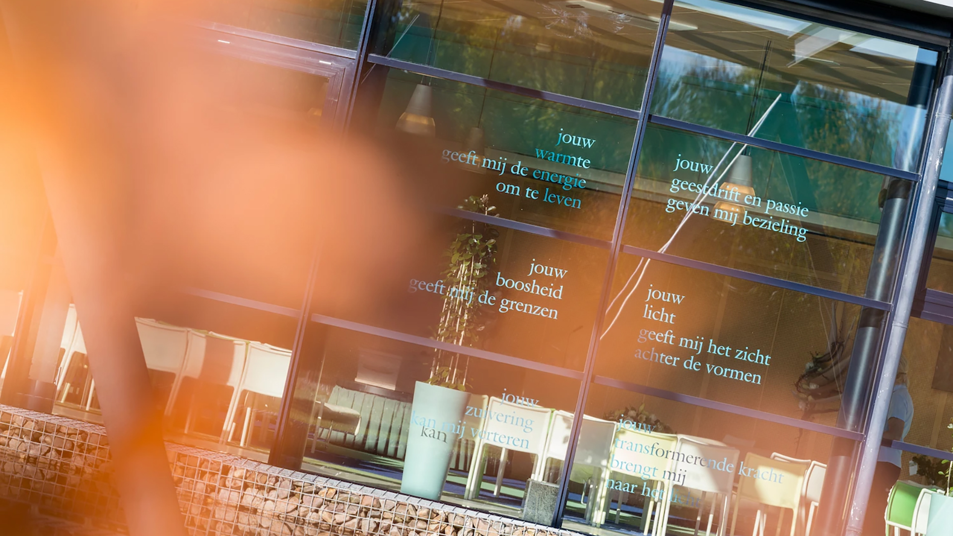 Natuurlijke uitstraling door gebruik van glas, hout en mergel